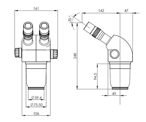 瞳距調節范圍(用10X 目鏡)